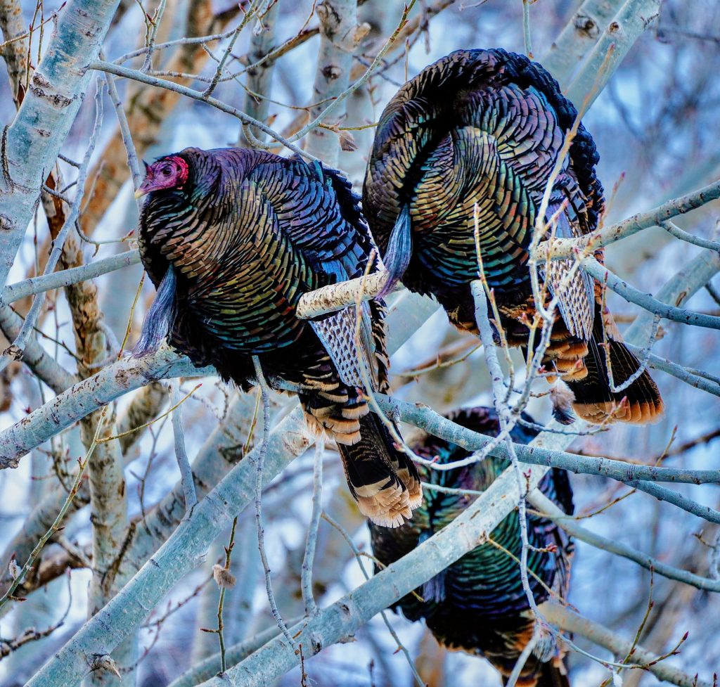 Wild turkeys are hardy, usually capable of scratching away ice and snow to get at food. But if the snow and ice are too thick to access foods on the ground or temperatures too cold for movement and foraging, birds begin using vital fat reserves.