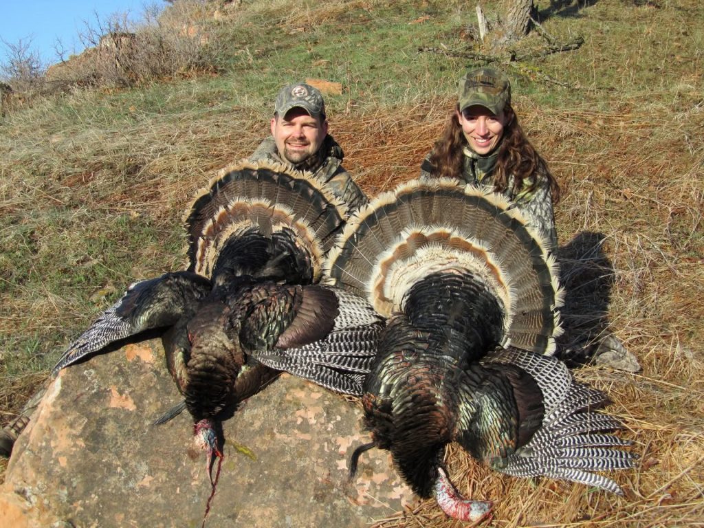 Abbie’s first turkey hunt was back in 2013. Steve entered her into a raffle to win a guided hunt in Devil’s Tower, Wyoming. When her name was announced as the winner, she thought it was a joke. A few months later, she set out with her 20-gauge youth model shotgun and got her first bird. Steve was proudly watching her from a blind on top of the hill and later bagged one himself.