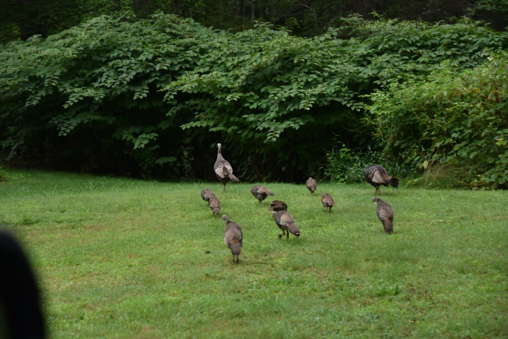 Later in summer, hens with poults and hens without poults gather in summer flocks. They usually frequent more open areas, such as pastures. Gobblers typically regroup with the guys again.