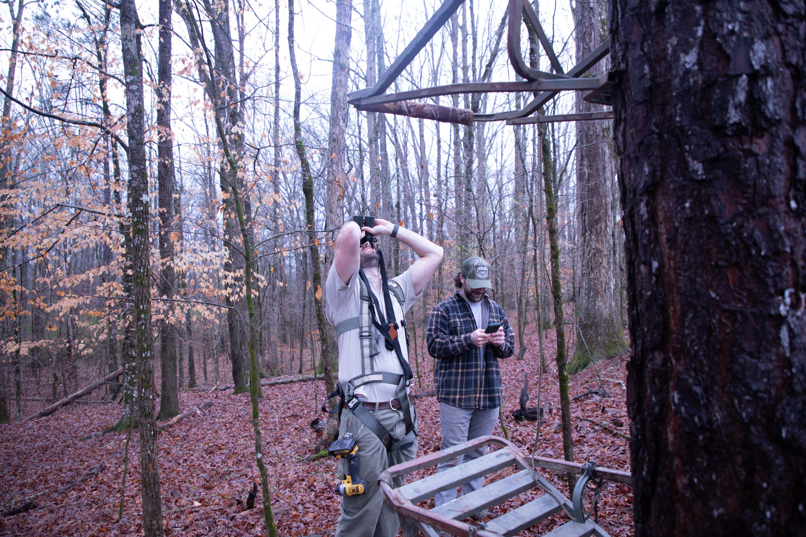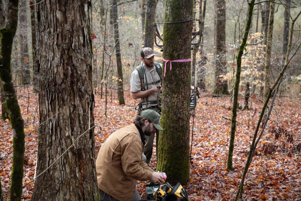 Tree by tree, the two continued hanging recording devices and were able to get 16 units up before dark.