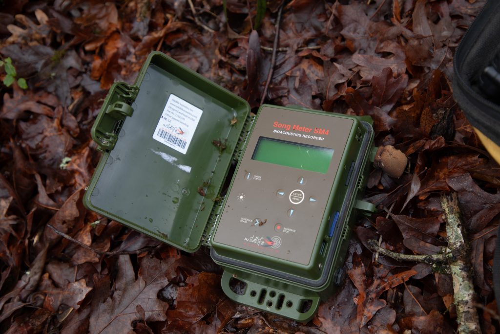The day started by gathering early at UGA’s B.F. Grant Memorial Forest, a large property that adjoins both USDA Forest Service land and Georgia Department of Natural Resources land. Wightman has hung ARUs on this specific location since 2018.