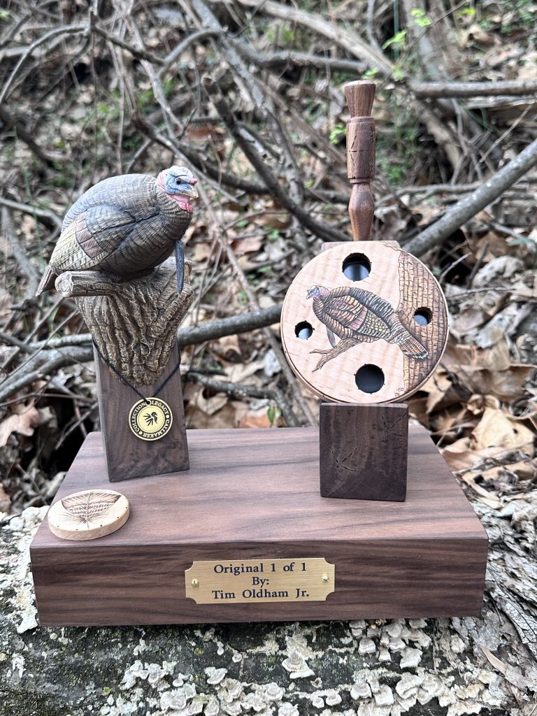 “You’re always trying to take wood away to get a turkey call to sound good,” Oldham said. “Then when you’re adding carving to it, you’re putting wood back. You’ve got to figure out how to make that work.”