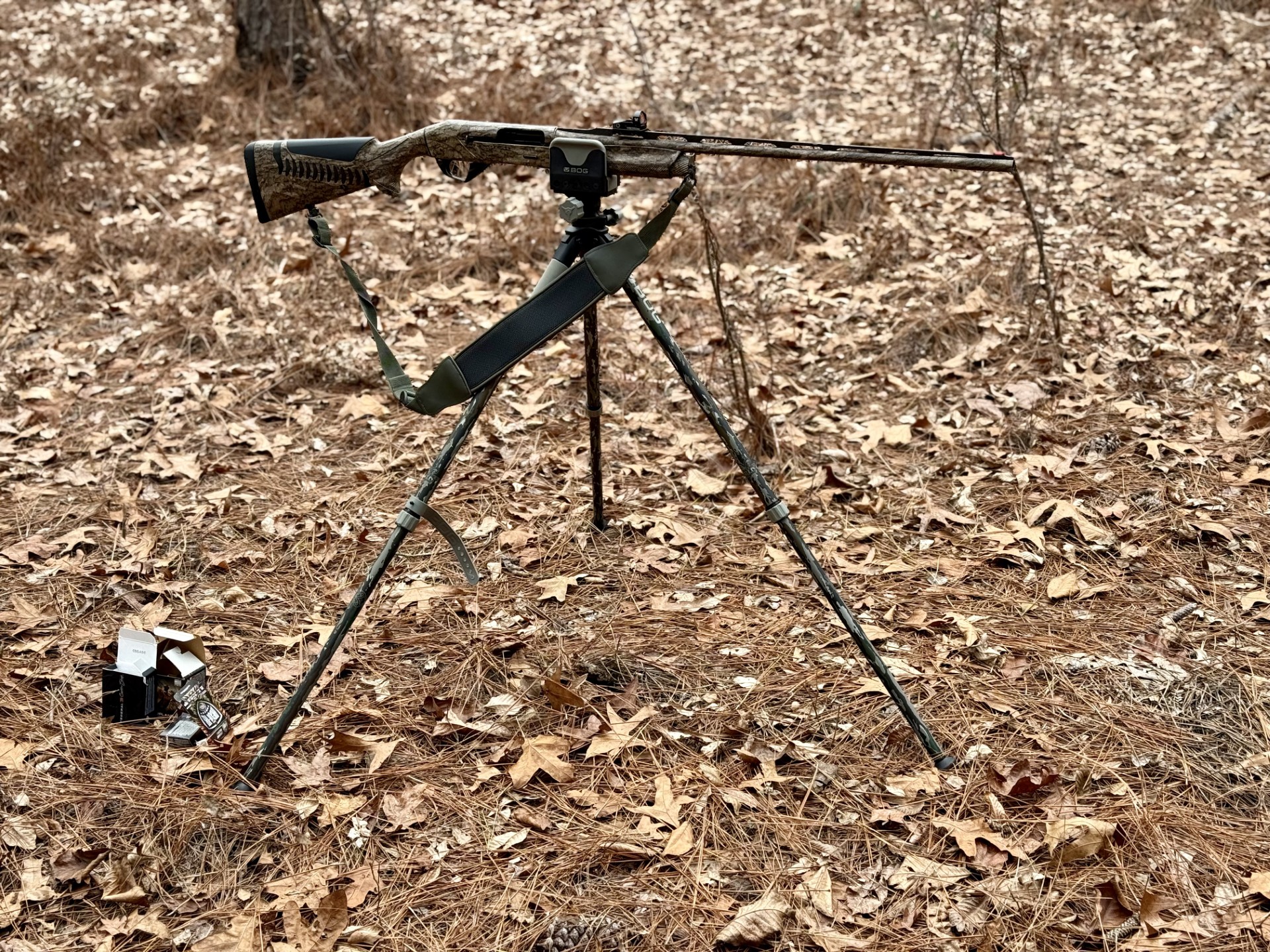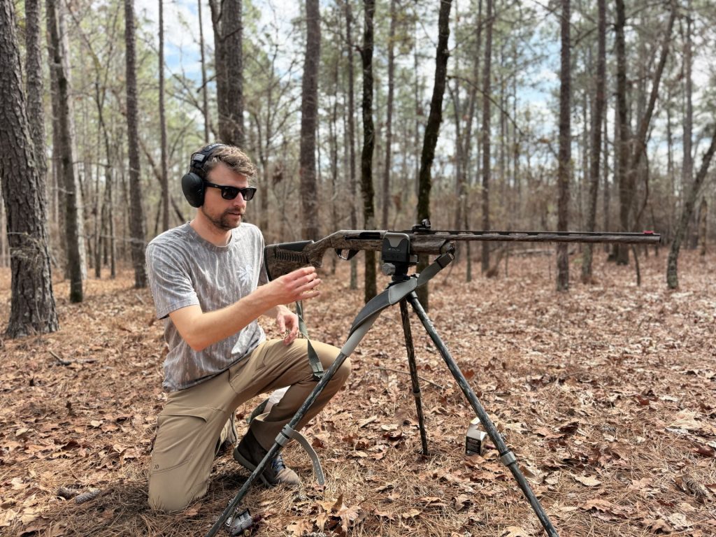 I recently used BOG’s DeathGrip Bantam tripod to zero a new red dot sight and pattern the turkey loads and shotgun I plan on hunting with this spring.