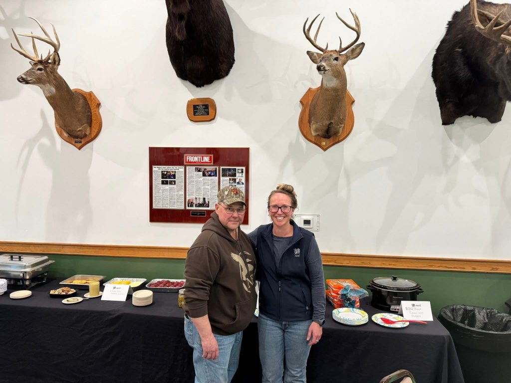 After the attendees tried the different kinds of wild game, chapter committee members Emilie Cram and Kevin Antonovich spoke about the NWTF as an organization, sharing the important conservation work completed regionally within the Forests and Flocks Initiative, and nationally. Cram explained why being a part of this conservation organization is important.