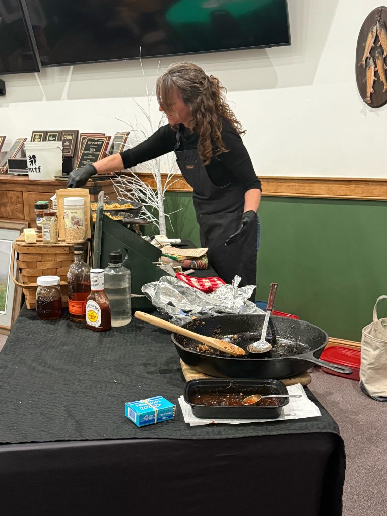 Many new hunters are unsure about cooking game, which often leads to overcooking. At the event, Sabol prepared two wild turkey dishes and gave a presentation. She brought in several old Maine wild game cookbooks, some of which didn’t have turkey recipes, showcasing how much the landscape has changed over the years. Cooking with wild turkey has been something new and exciting for Sabol.