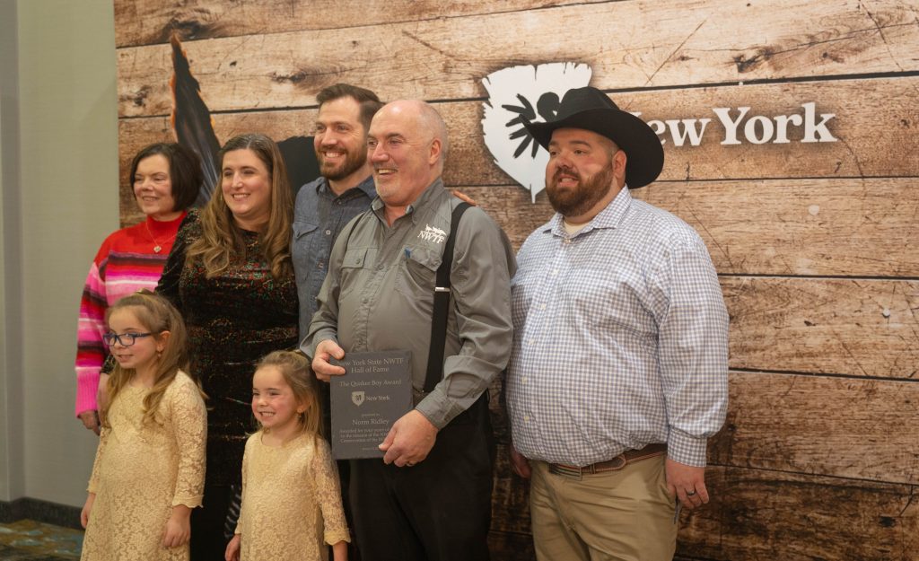 Ridley, NWTF New York State Board member and president of the Hardwood Strutters Chapter, started his chapter’s JAKES Day event over 30 years ago. His family members surprised him at the banquet to be in attendance when his award was announced.