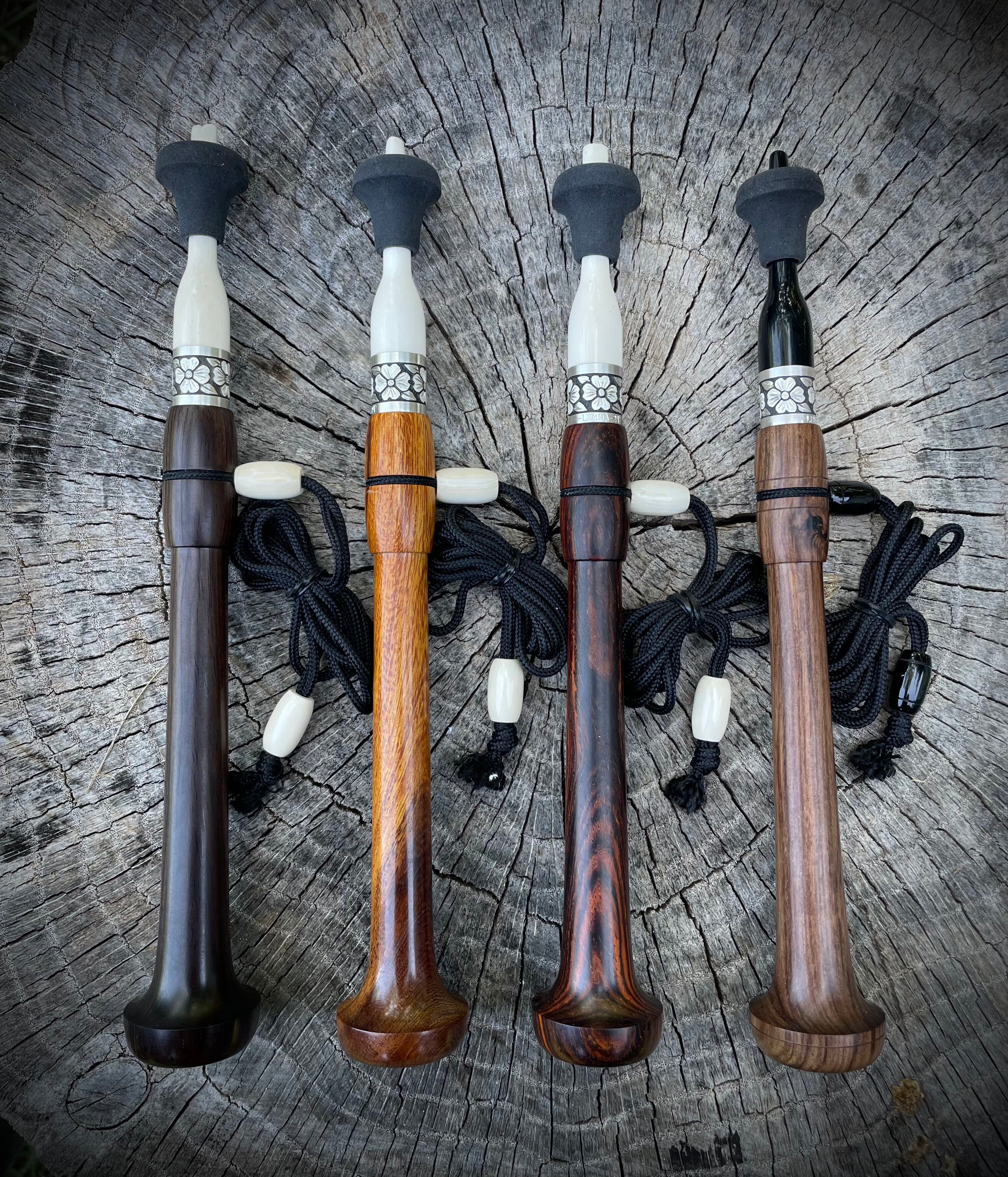 “Bones and canes naturally vary in density, size and shape, and a call maker needs to affix them together somehow and make them sound good,” Lumma said. “But wood, on the other hand, can be machined to consistent, exact internal and external specifications. This control enables the production of sound and playability in a predictable and repeatable manner, which is what I love about them. Additionally, their clean lines provide an excellent space for decorating.”