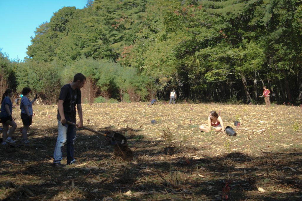 This year’s habitat planting was hosted at the new Rachel Carson multi-purpose center in collaboration with the The Friends of Rachel Carson NWR and the Maine Conservation Corps. The event was partially funded by our partners at L.L Bean. The land behind the center used to be a dense and unproductive stand of conifers that the FWS mulched a few days prior to the event. Volunteers from across New England planted wetland trees and shrubs such as grey and silver dogwood, hawthorn and button bush in their place.