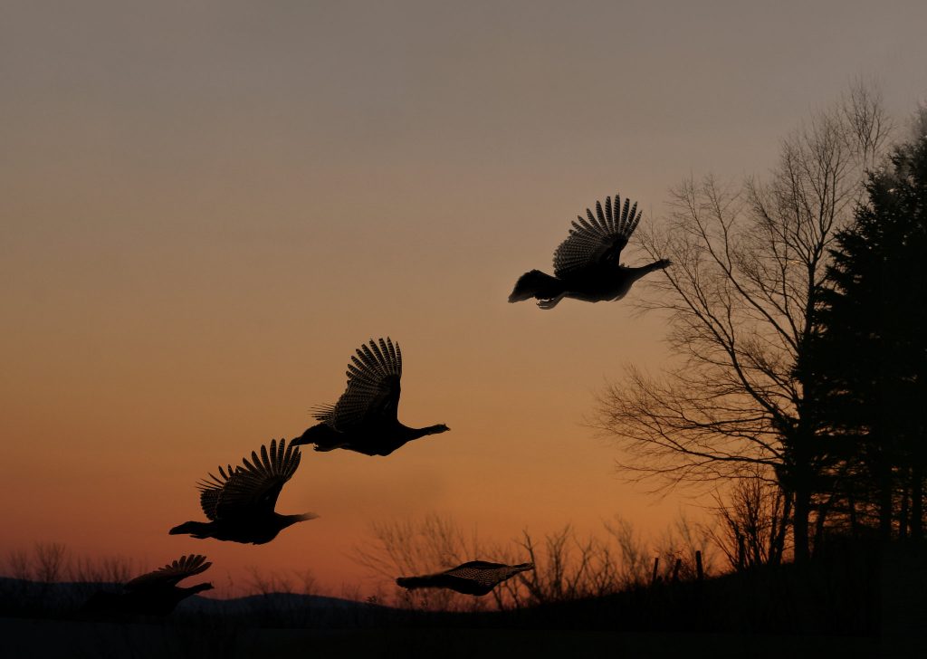 While some hunters will roost turkeys simply by listening for anything from a fly-up cackle to a gobble, others prefer more active roosting tactics, such as using an owl, coyote or crow call to get a response. Some hunters will even use hen calls at night to excite toms who think there will be a hen waiting for them the next morning.