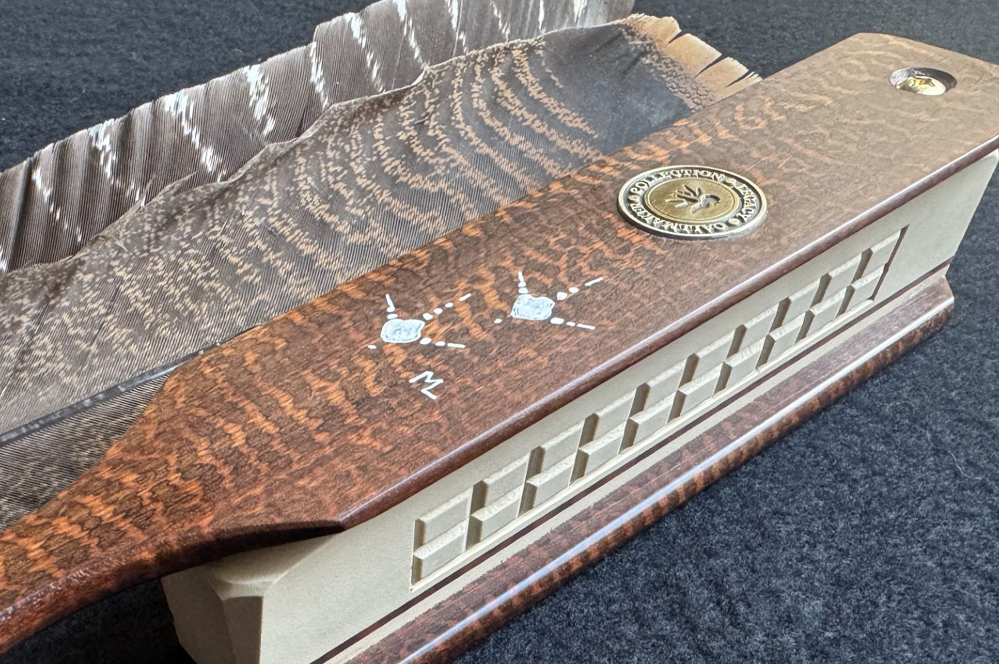 This month features Mike Lapp of Pennsylvania and his No. 1 of 1 box call comprised of Pennsylvania holly and snakewood from Suriname. The call features an NWTF Legacy Callmaker Collection inlay coin and is signed by Lapp.